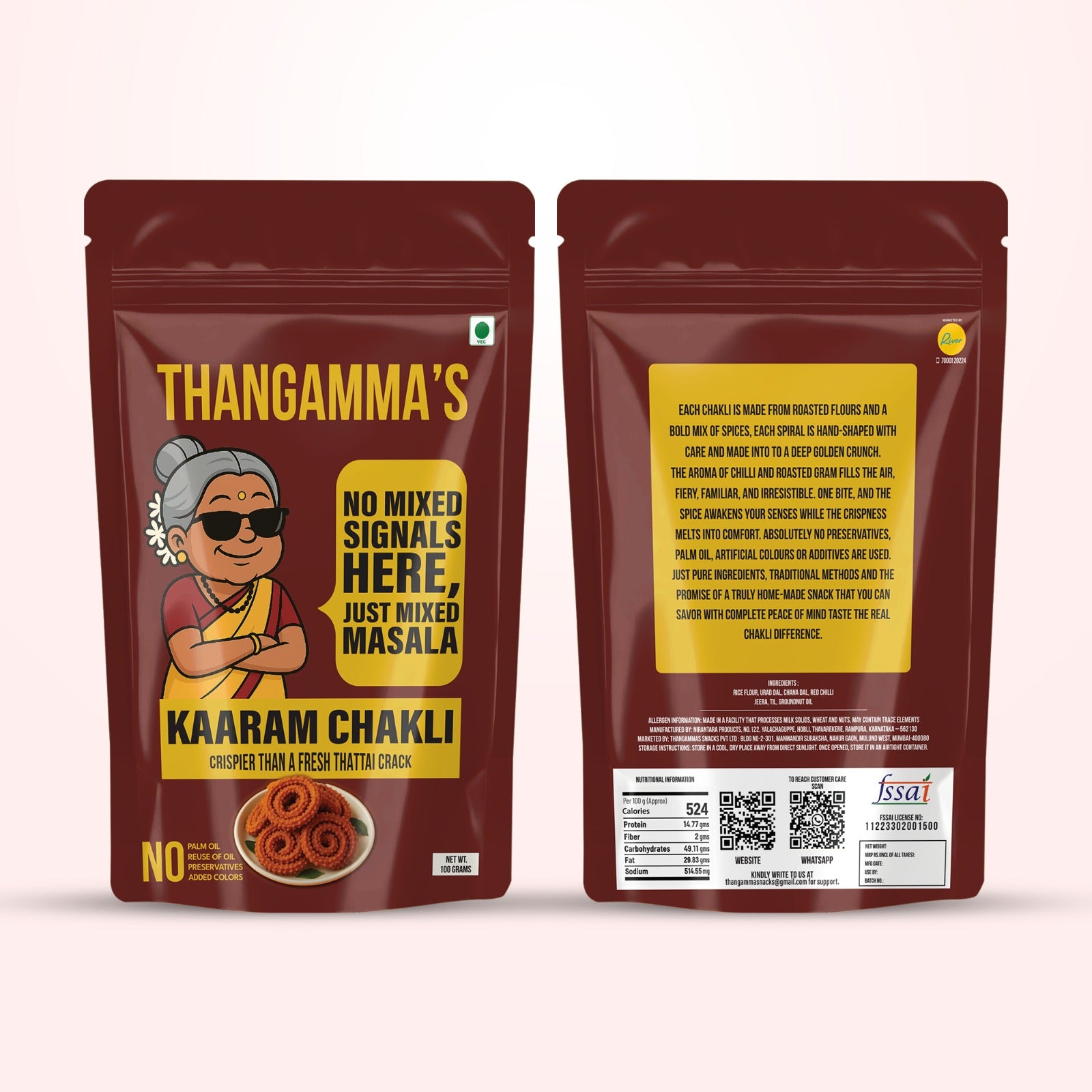 Absolutely no preservatives, Palm Oil, Artificial Colours or Additives are used. Just Pure Ingredients, Traditional Methods and the promise of a truly home-made snack that you can savor with complete peace of mind Taste the real chakli difference.